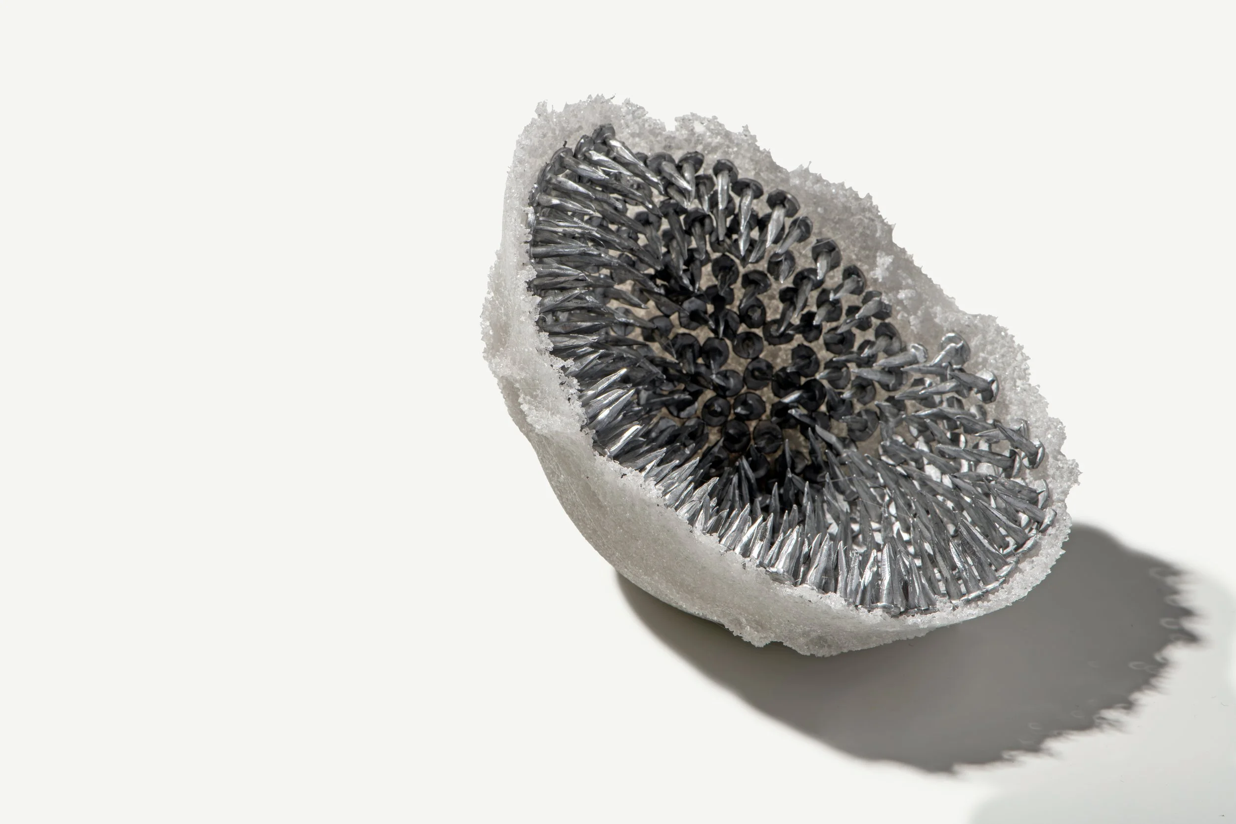 "Hostile Environment" - Pate de verre glass, carpet tacks, 6" x 3" x 3"; Private collection