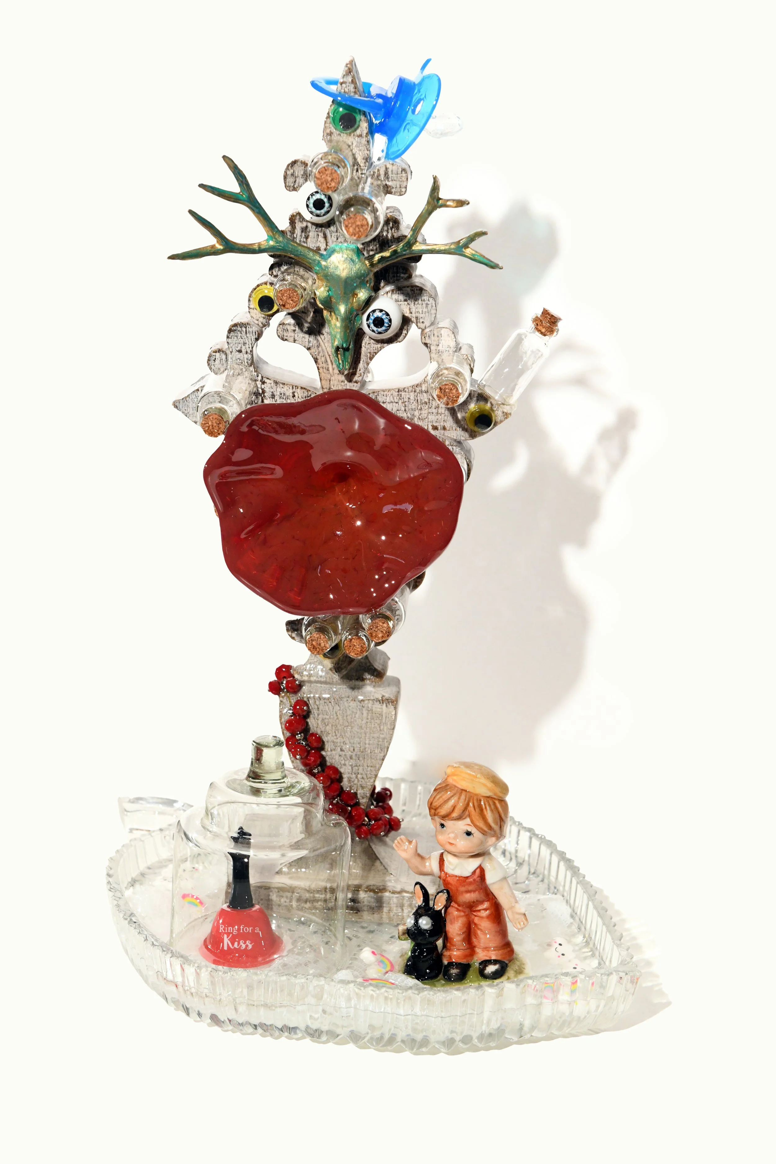 Study for "The enticing promise of familial love" - blown glass, found object flowers, clear casting resin