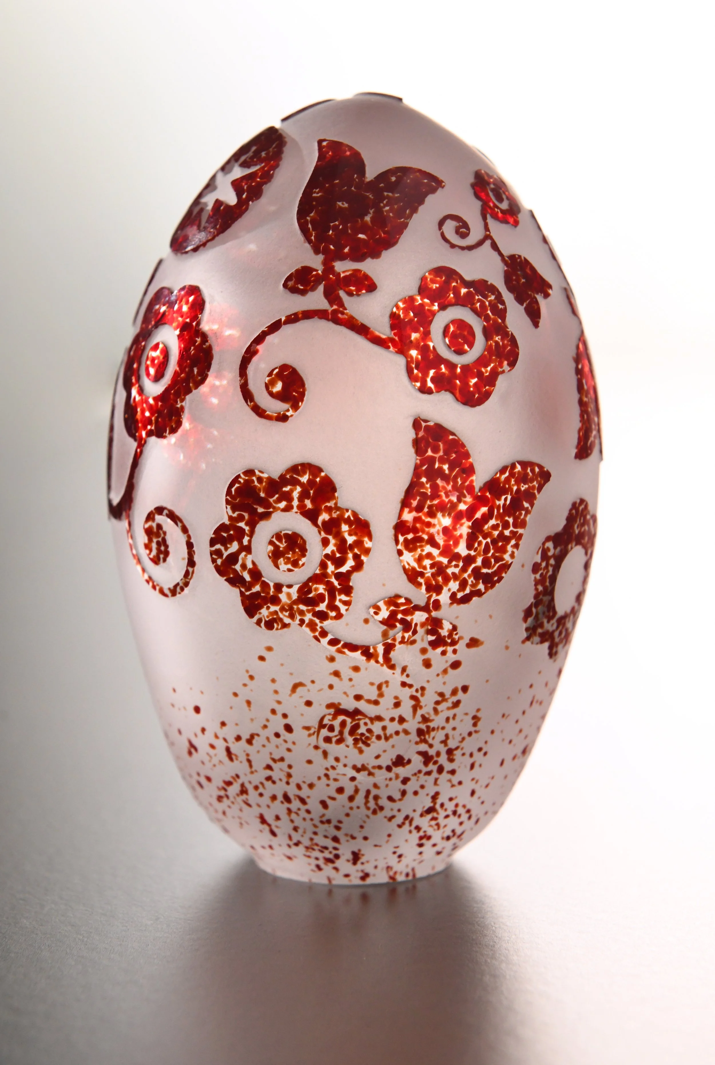 "Blak pisanki"- sandblasted blown glass, 6" x 4"